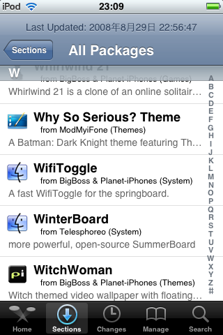 在All Packages內,你只要在右手邊的一排英文字按一下W,就會飛到W字的軟件旁邊,見圖已見到WinterBoard了,按它一下