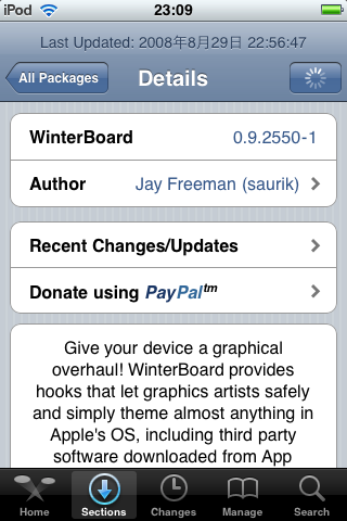 | 介紹 | 就到Sping Board 和 Summer Board,很多曾經是iPhone 2G機的用家對它一定不會感陌生,而Winter Board就是承接Summer Board首個推出在Cydia的轉換主題軟件 | |