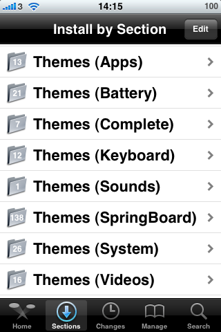 有了WinterBoard,如果你不會用Winscp這類軟件把theme (主題)加進去,其實Cydia還是不有不少的可載主題,如圖,它算至可以把待機儲電的圖像都改變,看到Battery這個就是了,其他的,你可以一人