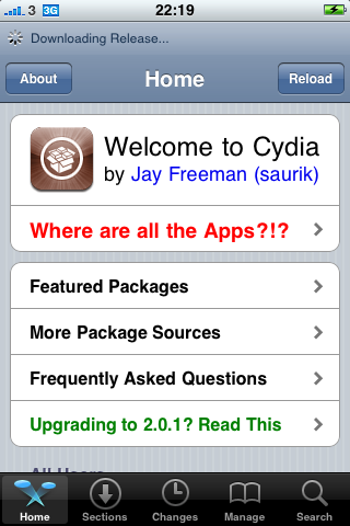 打開cydia,第一時間見到佢個home,可以睇到佢加左d咩野,