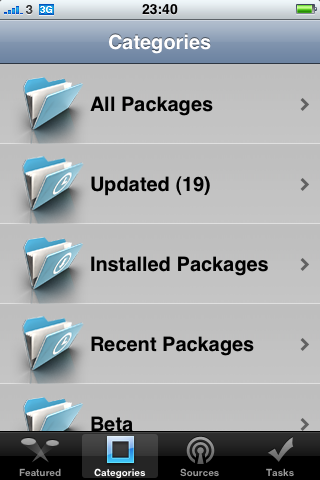 之後第二頁叫categories(目錄)佢已經包左有咩新野(update)同你裝左咩野(installed packages)