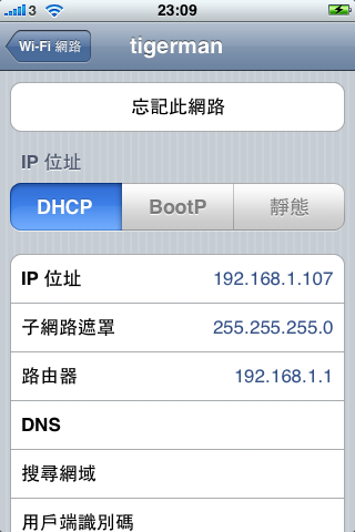 如圖先入IPHONE既設定,再睇下自己個Wi-Fi既IP,你睇到下面個IP係192.168.1.107,寫低佢先!!