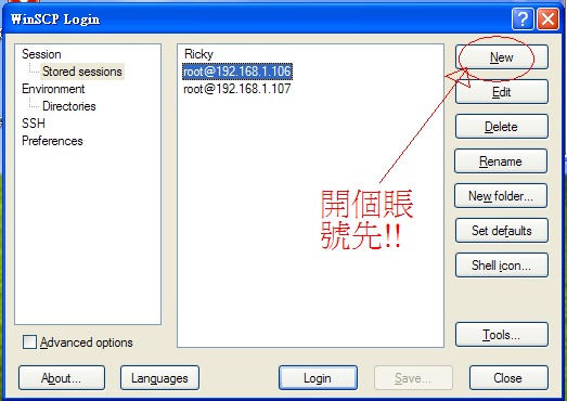 係開個WINSCP啦~~ 之後按new入資料~