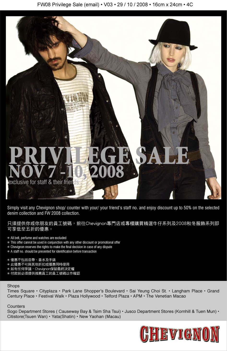 Subject: FW: Chevignon privilege Sale (Nov 7 - 10) - 4