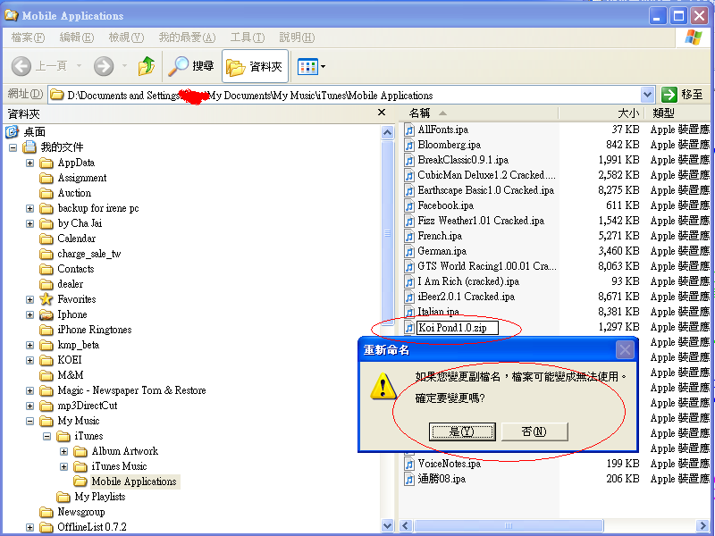 如圖,按"是"確定改副檔名由ipa轉做zip