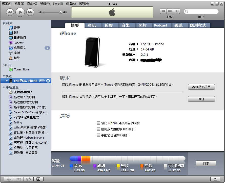 连接iphone去itune,如图。
